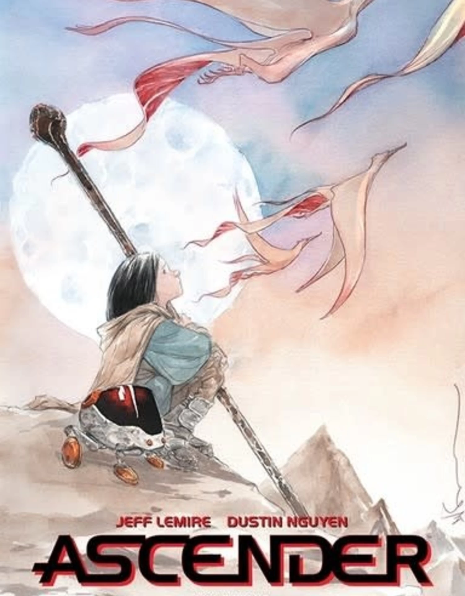 10 years after the conclusion of DESCENDER, magic has taken the place of machinery, and the rules are very different indeed. Mila, daughter of Andy and Effie, spends her days exploring the lonely wilds of the planet Sampson and trying to stay out of the clutches of the evil disciples of the all-powerful vampire witch known only as Mother. But, just like her parents, Mila doesn’t like to play by the rules, and when a certain robot pal of her dad’s shows up, nothing will ever be the same!With all the scope and heart of the sci-fi classic, DESCENDER, powerhouse creative team JEFF LEMIRE and DUSTIN NGUYEN reunite to take readers on an unforgettable fantasy quest!Collects ASCENDER #1-5