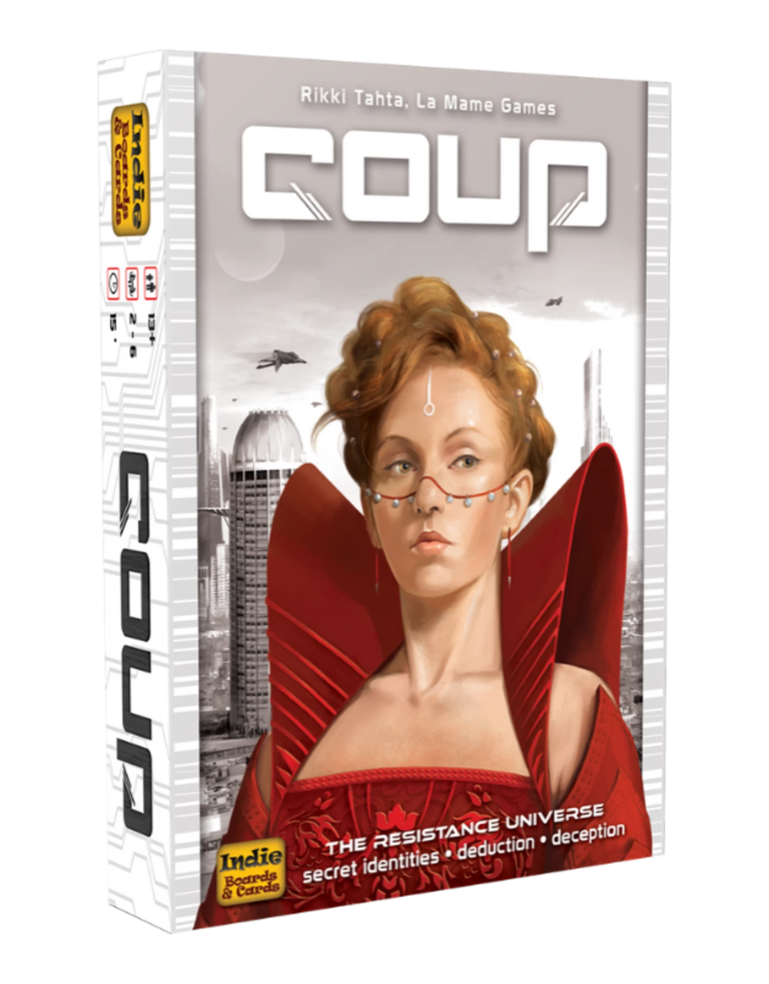 In Coup, you want to be the last player with influence in the game, with influence being represented by face-down character cards in your playing area.