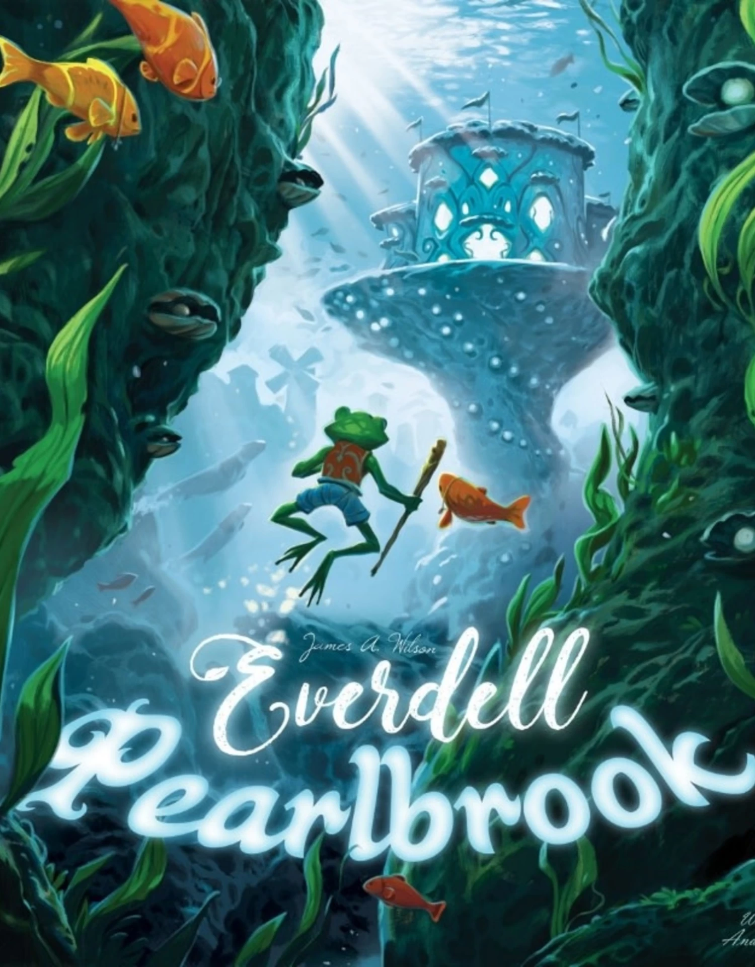 Explore a new underwater society underneath the Pearlbrook River! Pearlbrook introduces a new side board, the River board, where you’ll send your Frog Ambassador to gather a new resource, pearls. You’ll also encounter new aquatic critters and constructions! Collect enough pearls and you can construct fabulous Wonders and Adornments, to make your city the pride of Everdell!