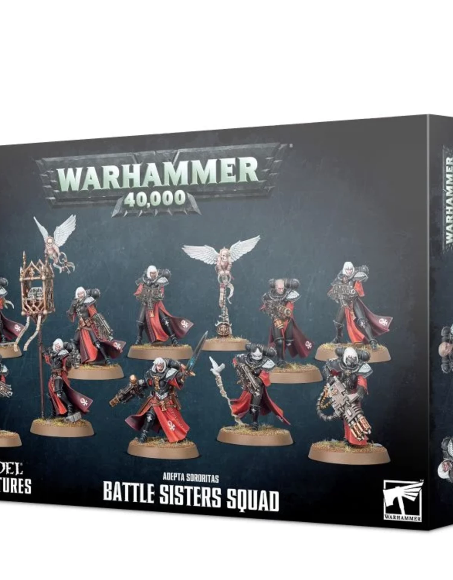 This kit builds 10 Battle Sisters and 1 Incensor Cherub. The Battle Sisters are equipped with boltguns, though up to two of them can be assembled with a special weapon (storm bolter, meltagun or flamer). Alternatively, one Battle Sister may carry a special weapon while another bears a heavy weapon (heavy bolter or heavy flamer). One of your Battle Sisters can carry a sacred Simulacrum Imperialis, with two variant options mounted atop the pole. The components also enable you to build a Sister Superior armed with a chainsword or power sword and a choice of ranged weapons, including a condemnor boltgun or combi-weapon (combi-flamer, -melta or -plasma).