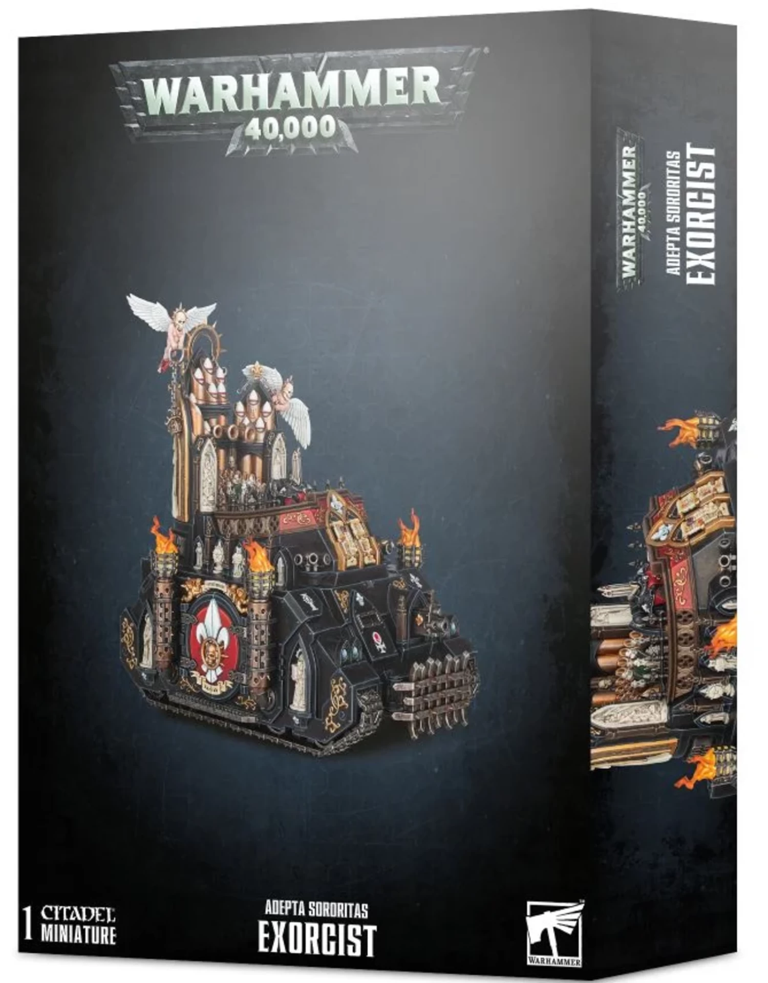 The kit comprises 99 components and includes all of the Exorcist’s weapons and wargear options. The model comes supplied with an Adepta Sororitas Transfer Sheet.