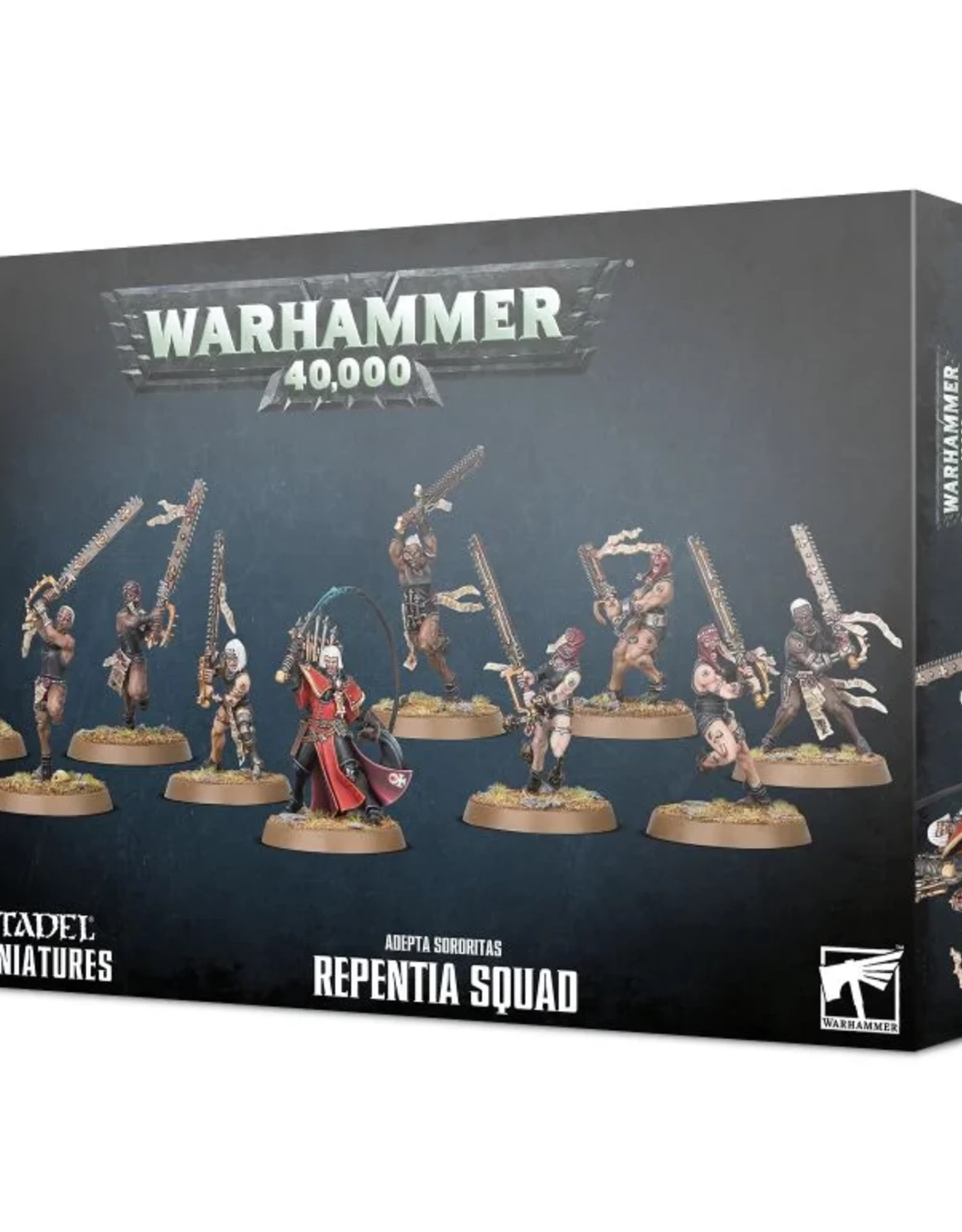 The kit builds nine Repentia armed with penitent eviscerators. Each body has a choice of two sets of arms for added variety. The Repentia Superior wields a pair of neural whips – one coiled and the other mid-lash – though one can instead be swapped for a holy tome. Repentia Superior can also be assembled with a choice of two heads (either with or without helmet).