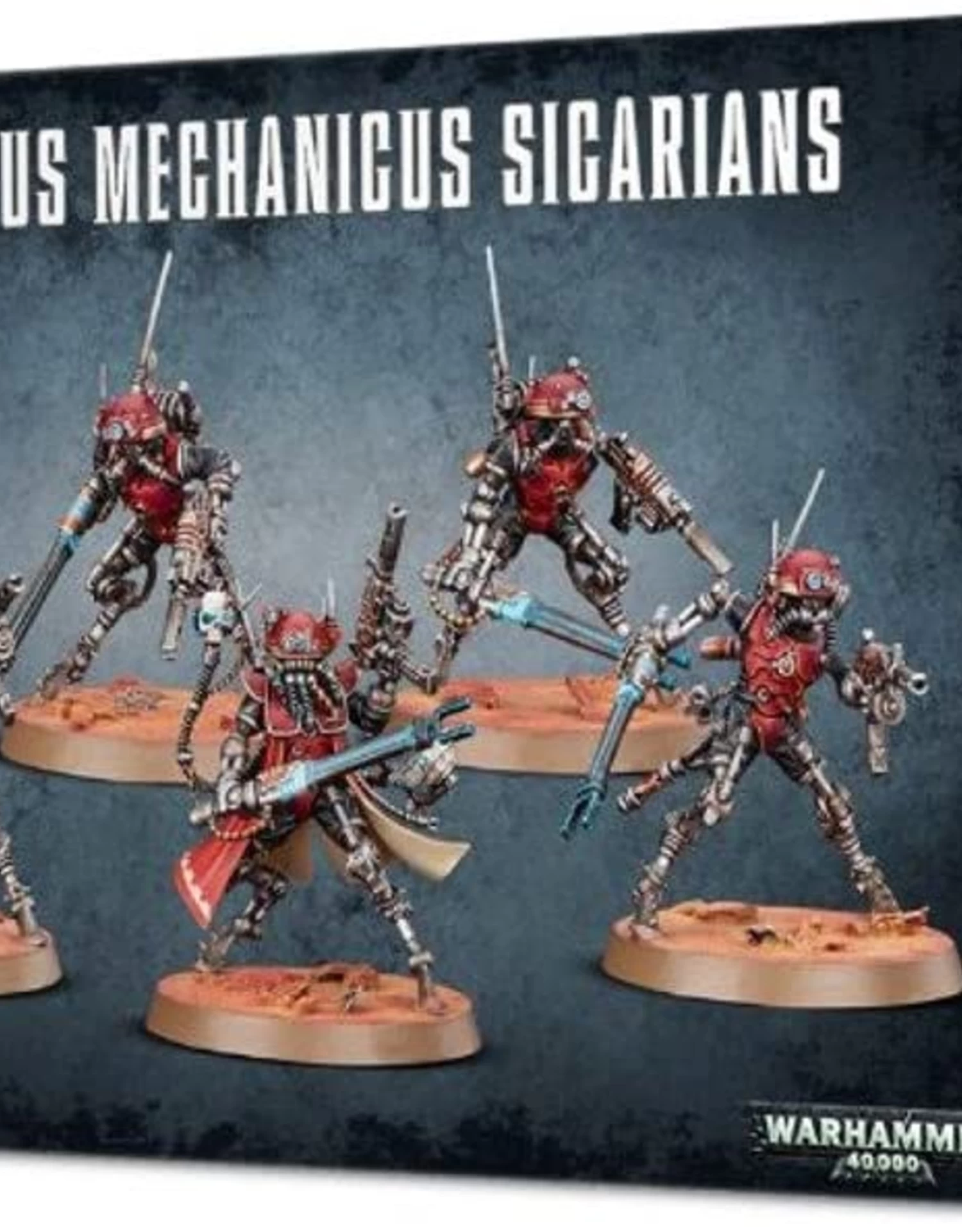 This 117-component, multi-part plastic kit contains all the parts necessary to make either five Sicarian Ruststalkers (including one princeps), or five Sicarian Infiltrators, and comes with five 40mm bases.