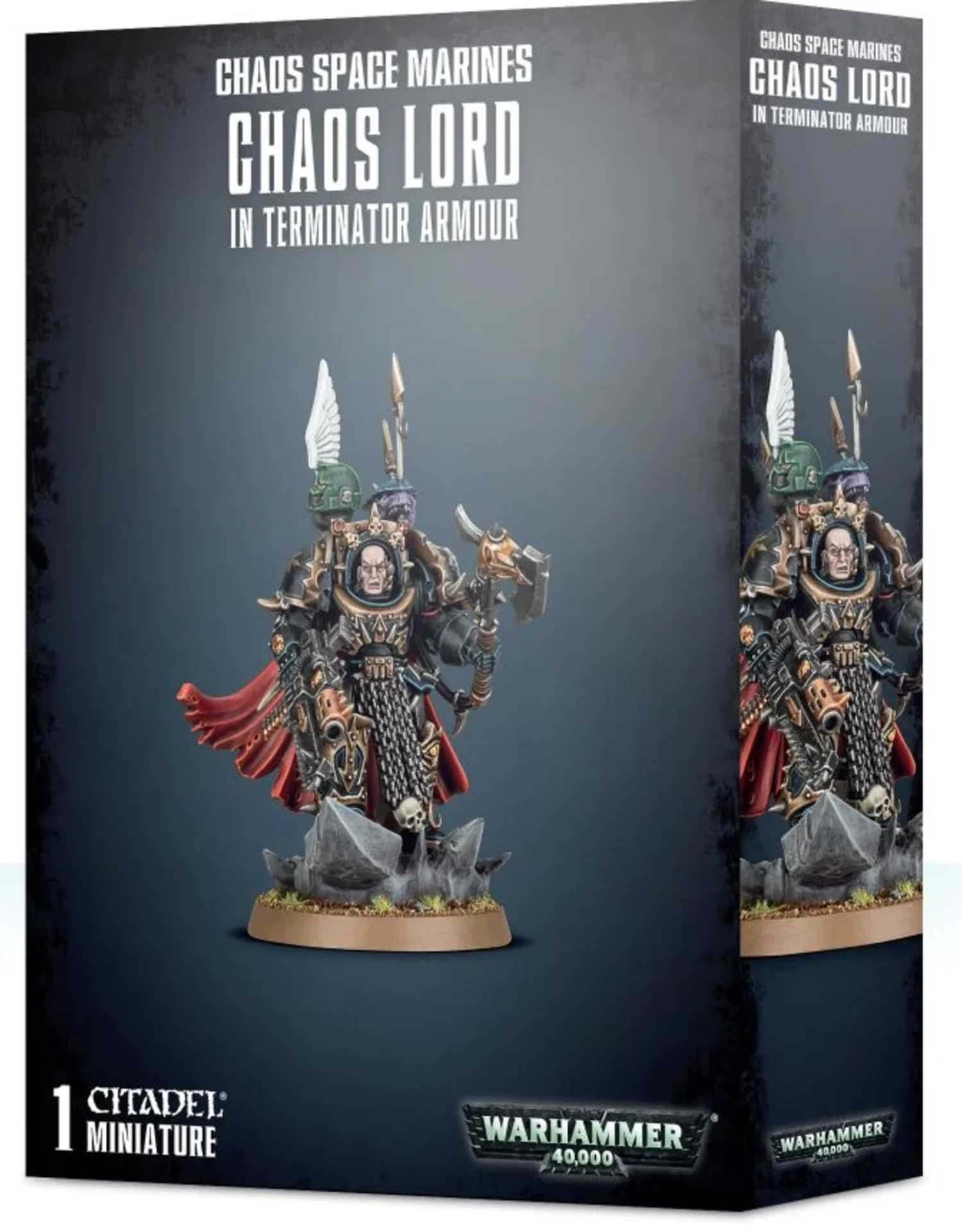 This boxed set contains 1 multi-part plastic Chaos Space Marines Terminator Lord, and includes options for a Chaos Space marines Terminator Sorcerer, combi-weapons, power weapons and more.