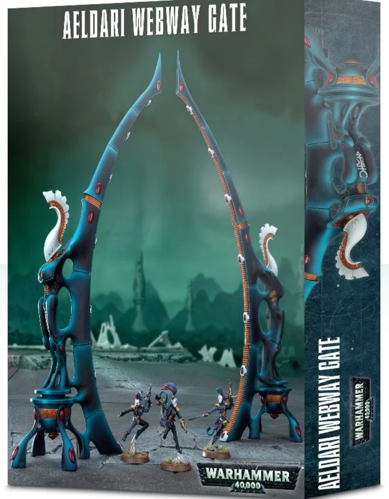 This multi-part plastic kit contains the components necessary to assemble a Webway Gate. Comprising 2 sections, this is a large wraithbone arch, tall enough for even a wraithknight to walk beneath! Each half of the Gate features a plinth with an Aeldari statue, presented as familiar helmeted and crested forms. Each of the wraithbone segments that make up the arch features a spirit stone set within, with 2 more spirit stones on each half at the top, which arcs away to a point.