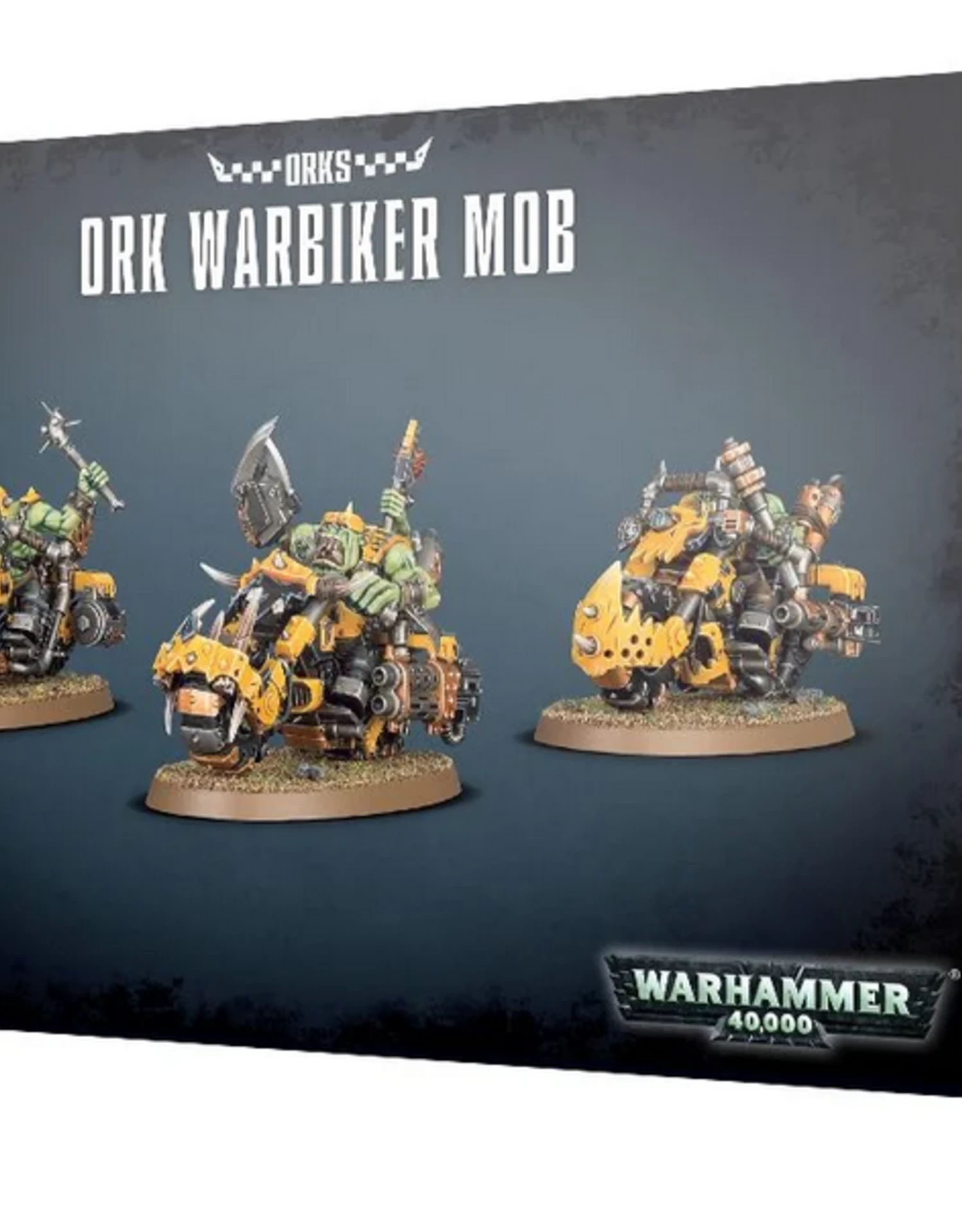This boxed set contains 3 multi-part plastic Ork Warbikes, and includes options for an Ork Nob on Warbike, a variety of wargear options and extra details. Models supplied with 75 mm oval bases.