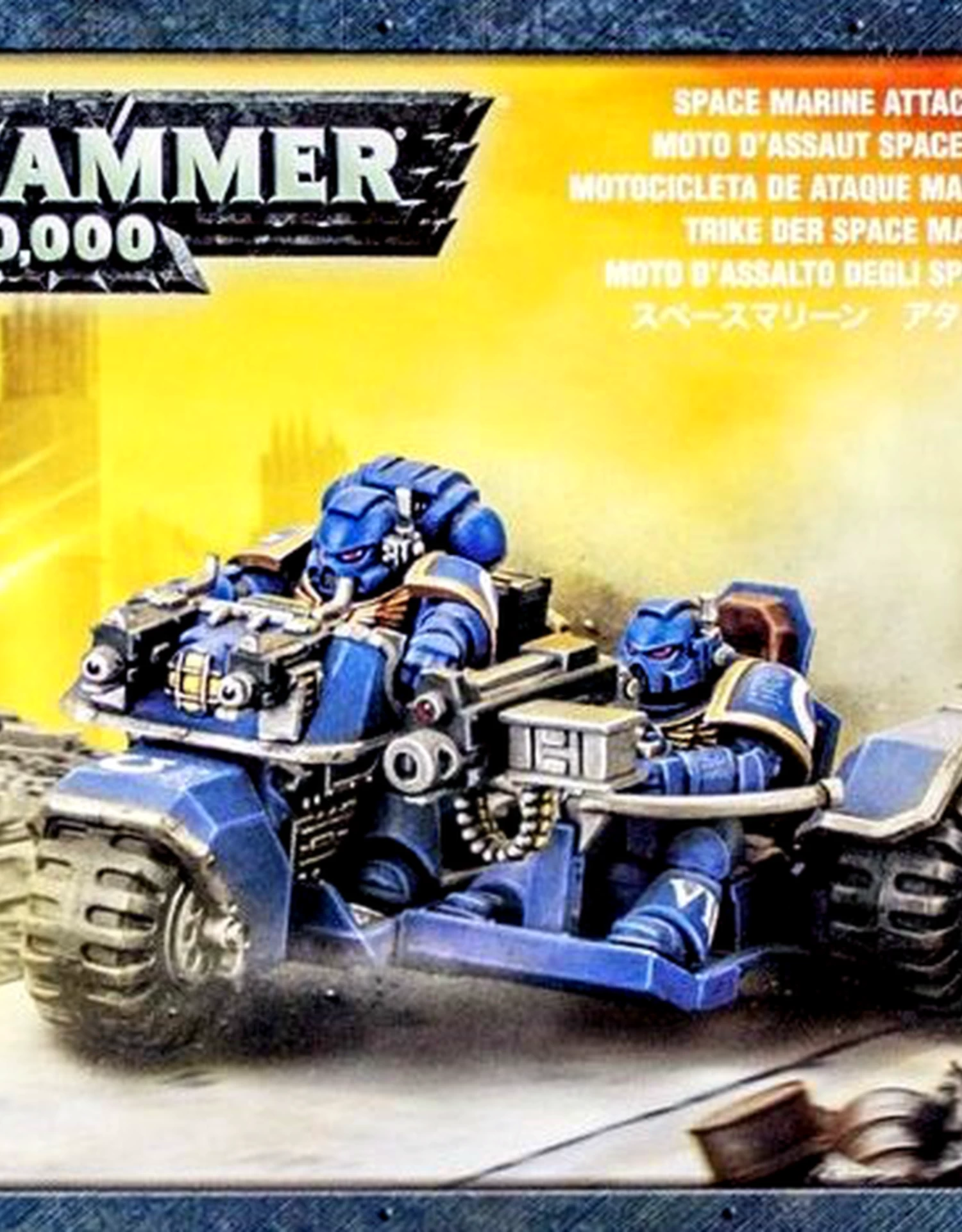 This box set contains one multi-part plastic Attack Bike that can be assembled with either a heavy bolter or multi-melta.