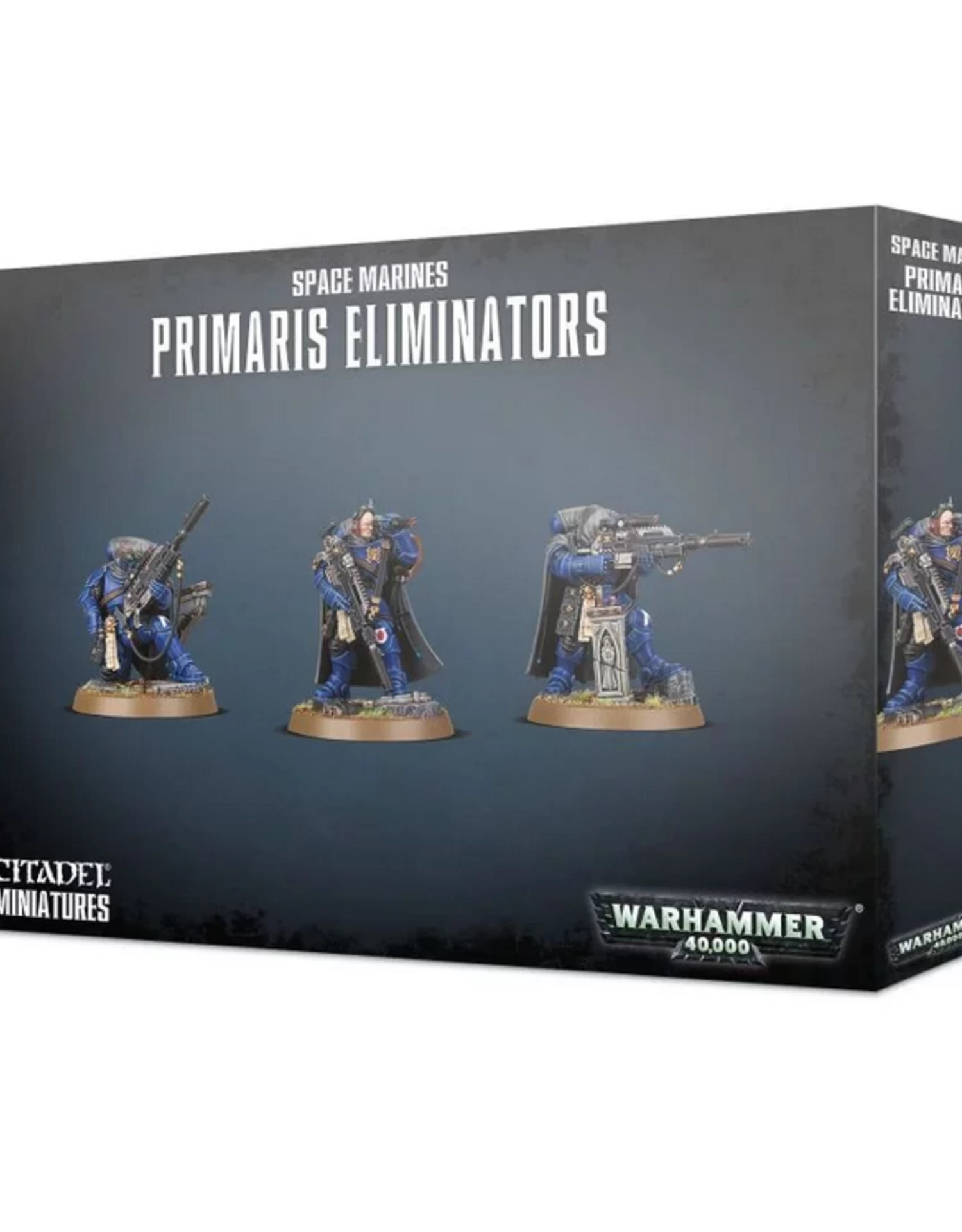 The plastic kit is made up of 60 components and makes three Eliminators. Each model is supplied with a Citadel 40mm Round base. The set also includes a Primaris Space Marines Infantry transfer sheet.