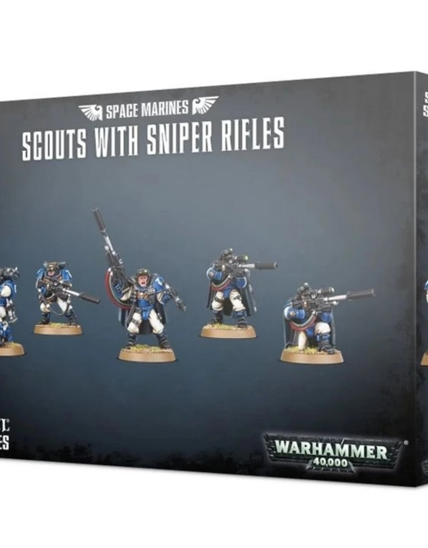 This 46-piece plastic kit makes 5 Space Marines Scouts each armed with a sniper rifle. There is also an option to arm one with a missile launcher instead. It comes supplied with five 25mm round bases and an Ultramarines transfer sheet.