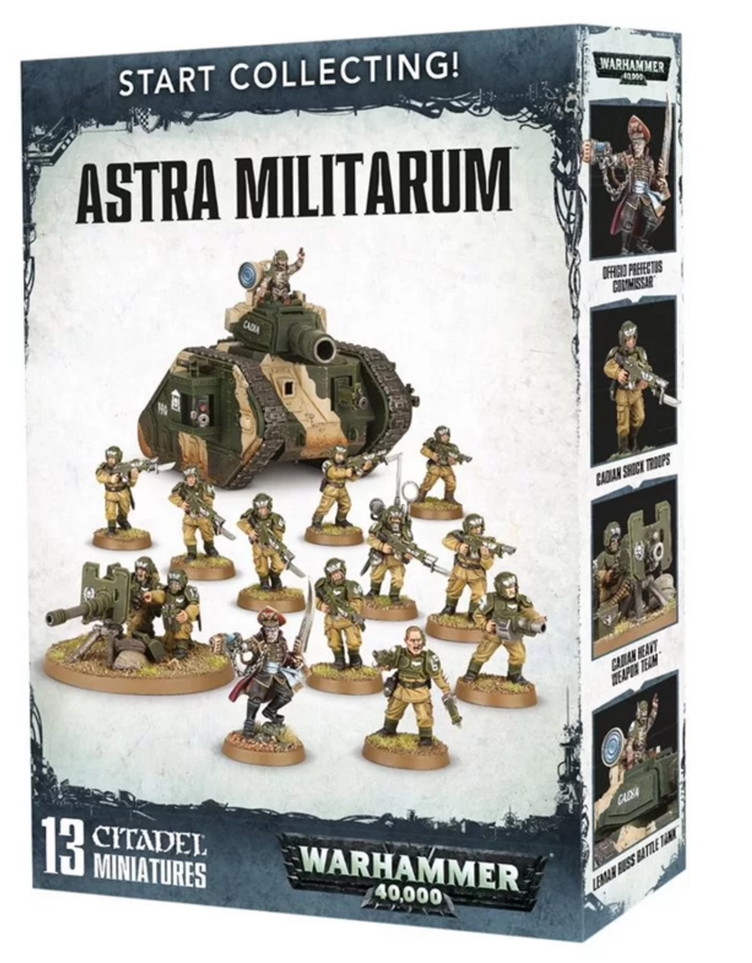 This is a great-value box set that gives you an immediate collection of fantastic Astra Militarum miniatures, which you can assemble and use right away in games of Warhammer 40,000! You’ll receive a Leman Russ Battle Tank, a Cadian Heavy Weapon Team, an Officio Prefectus Commissar and a set of ten Cadian Shock Troops.