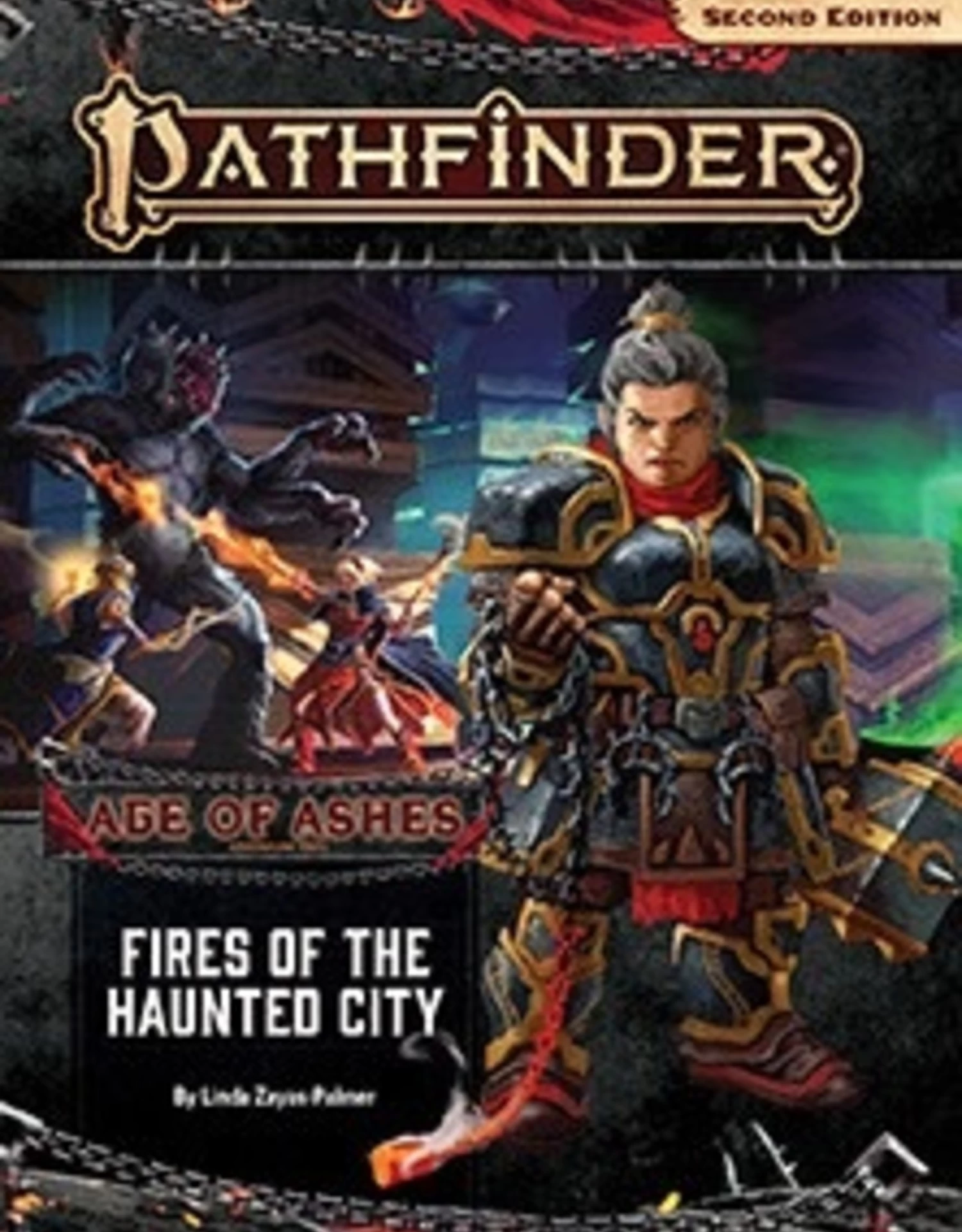 The Scarlet Triad—slavers at the center of a vast conspiracy—have been tracked to the Five Kings Mountains. There, in the subterranean city of Saggorak, the slavers have forged an alliance with a terrifying dragon. To stop them, the heroes must navigate a complex political landscape and perhaps make an alliance of their own with a dwarven king who’s been dead for thousands of years! The Age of Ashes Adventure Path continues with Fires of the Haunted City, a complete adventure for 12th- to 14th-level characters.