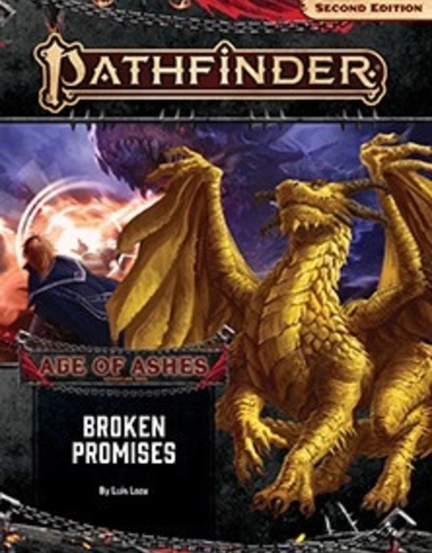 The Age of Ashes Adventure Path concludes! The heroes have defeated the Scarlet Triad, but in doing so have learned a shocking truth—the Scarlet Triad has been financed all these years by the enigmatic ruler of the island nation of Hermea, the gold dragon Mengkare! After a devastating manifestation of a violent dragon god erupts from the portals the heroes have been using the entire campaign, they must travel to Hermea to confront Mengkare about the Scarlet Triad and find out what the gold dragon’s plans actually are. Does he seek to save the world… or to end it in a devastating Age of Ashes?