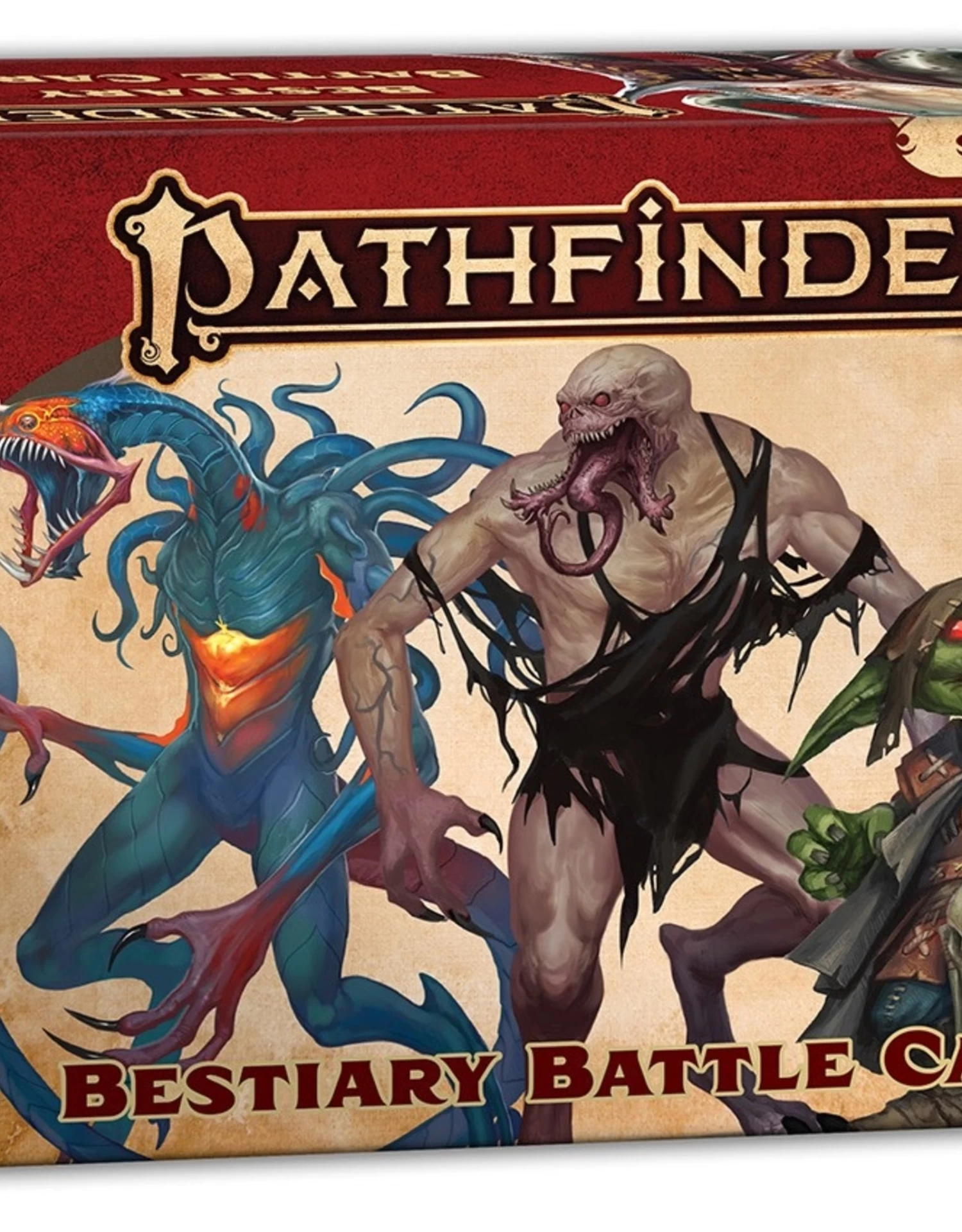 Keep the creatures of the Pathfinder Bestiary close at hand with this box-bursting collection of 450 reference cards featuring every monster from the core Pathfinder monster reference! Each 4 x 6 card is printed on sturdy cardstock and features a beautiful, full‑color image of a Bestiary monster on one side, while the other side provides that monster’s statistics for quick and easy reference. With each encounter, show the players what their characters are facing while keeping the monster’s abilities at the ready, and watch your games come alive!