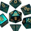16mm polyhedral set comes with 7 dice (d4, d6, d8, d10, d10 (00-90), d12, and d20
