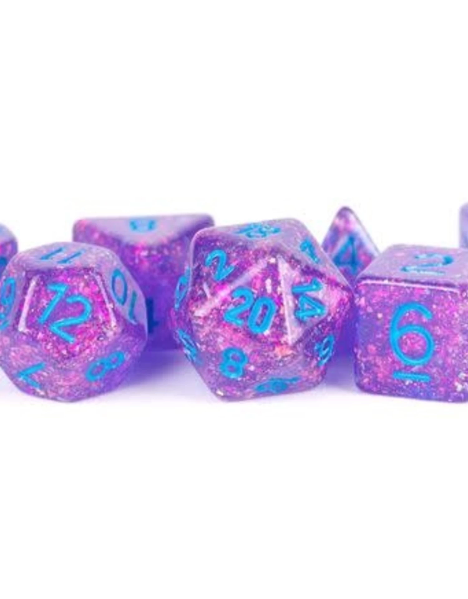 16mm polyhedral set comes with 7 dice (d4, d6, d8, d10, d10 (00-90), d12, and d20