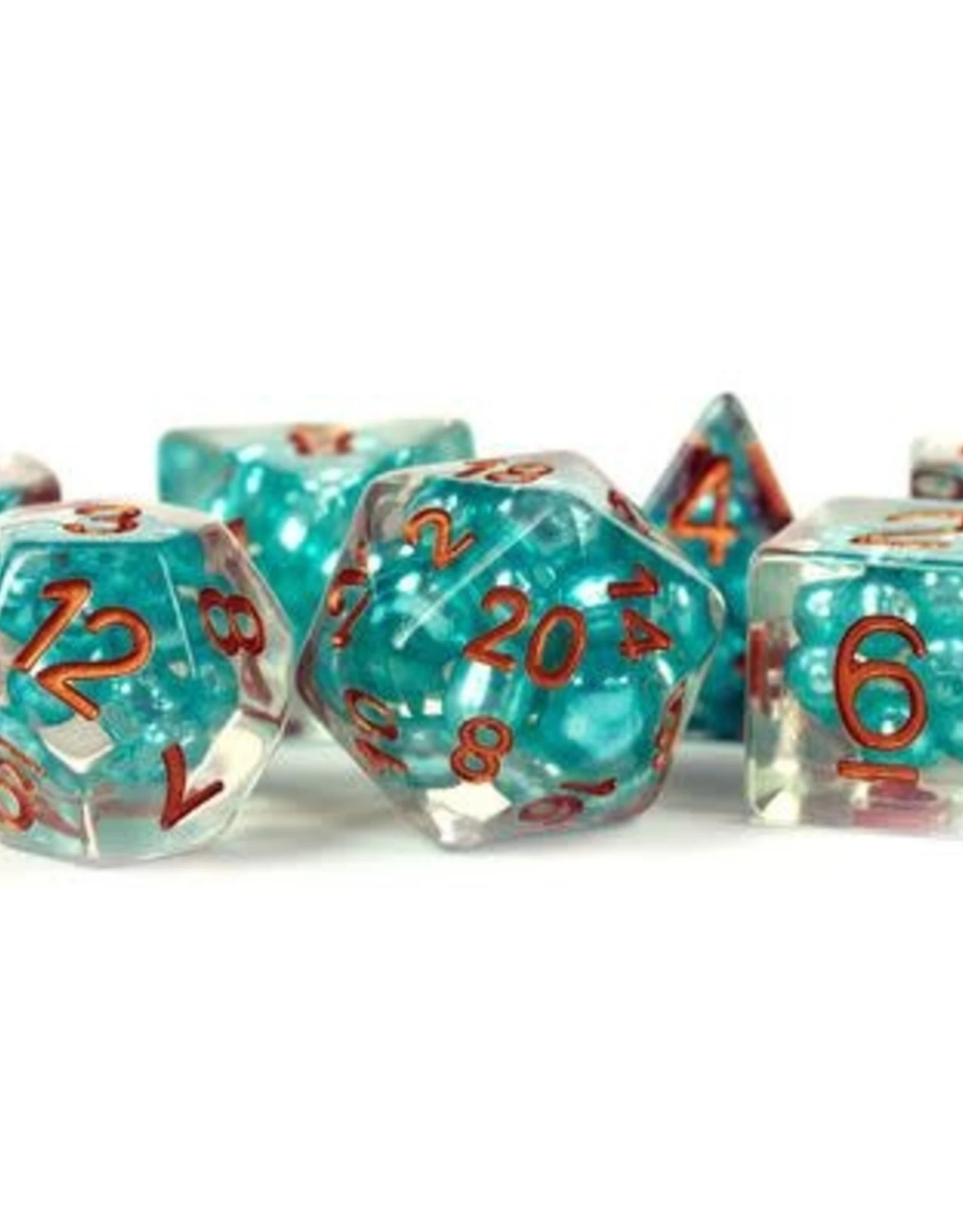 16mm polyhedral set comes with 7 dice (d4, d6, d8, d10, d10 (00-90), d12, and d20