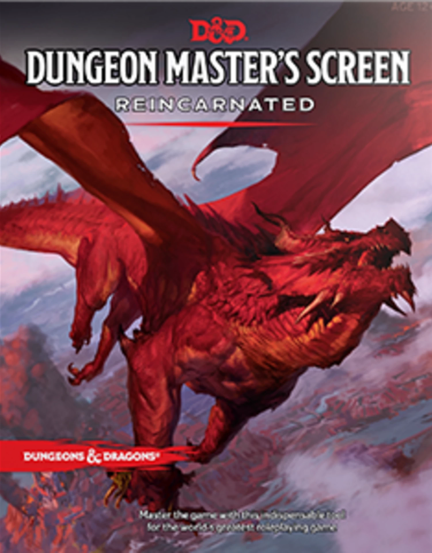 Lost is the poor soul borne aloft in the grip of the ancient red dragon featured in a spectacular panoramic vision by Tyler Jacobson on this durable, four-panel Dungeon Master’s Screen. The interior rules content on this new screen has been revisited and refreshed as a direct result of feedback received from D&D fans everywhere.